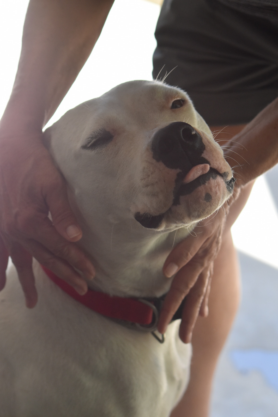 Con fortuna, tiene un carácter estupendo . Ya empezó su tratamiento para la filaria y esperamos que pueda vencer en unos 6 meses esta enfermedad.