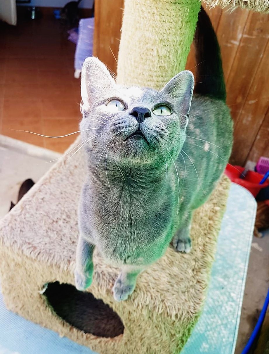 Amaral es esta preciosa gata azul ruso que ha sido encontrada por una compañera en una de las calles de nuestra localidad. Vió que parecía estar preñada y que era muy buena, de manera que se detuvo con ella, por si se había extraviado por la zona y alguien la estaba buscando. Tras preguntar a algunos vecinos de la zona, le dijeron que llevaba días por allí porque al parecer los dueños la habían dejado en la calle…