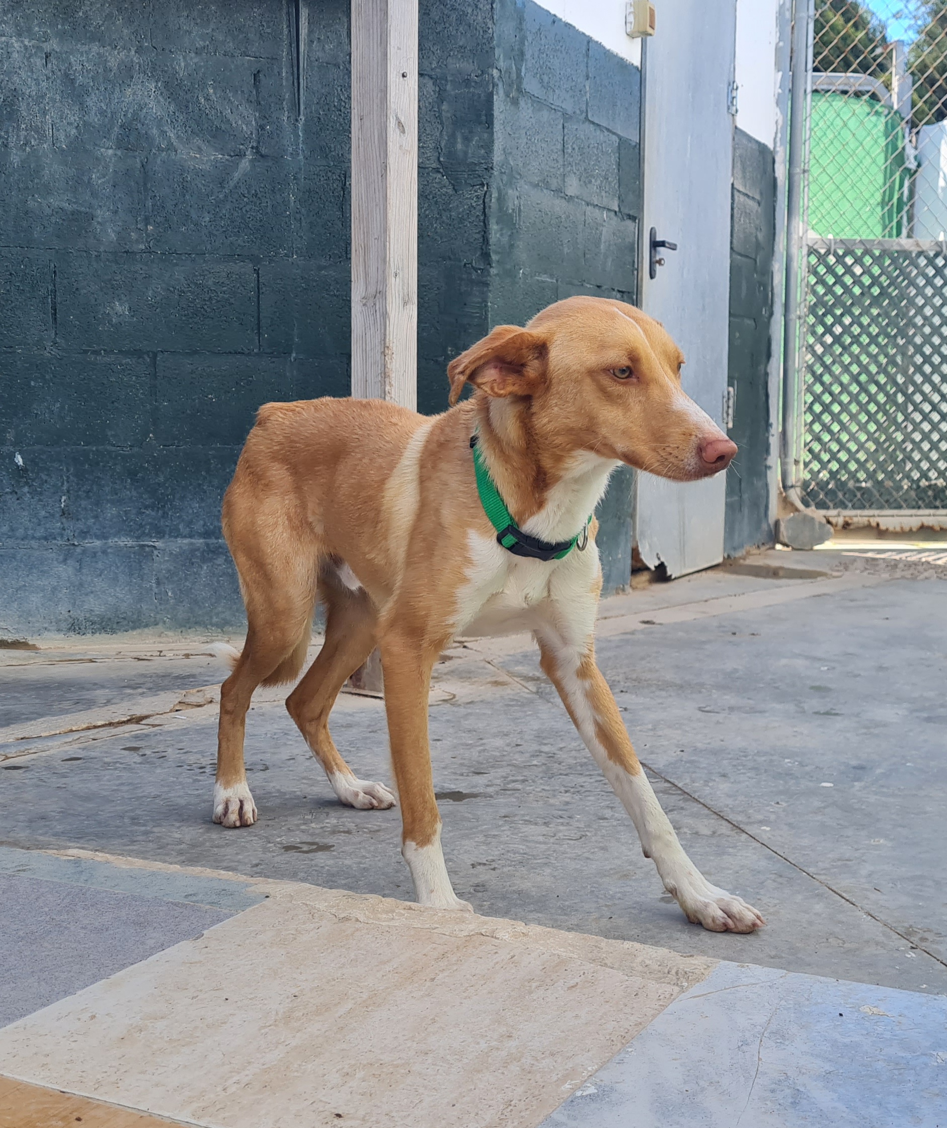 Bruno es este espectacular y guapísimo podenco macho adulto, que ha llegado recientemente a nuestras instalaciones. En su pasado, desconocido por nosotras, seguro que pesa una vida al lado de algún cazador que, cuando ya no le ha podido sacar más rendimiento, lo ha abandonado a su suerte. Llega algo delgado, pero pronto tendrá mejor aspecto con nuestros cuidados diarios.