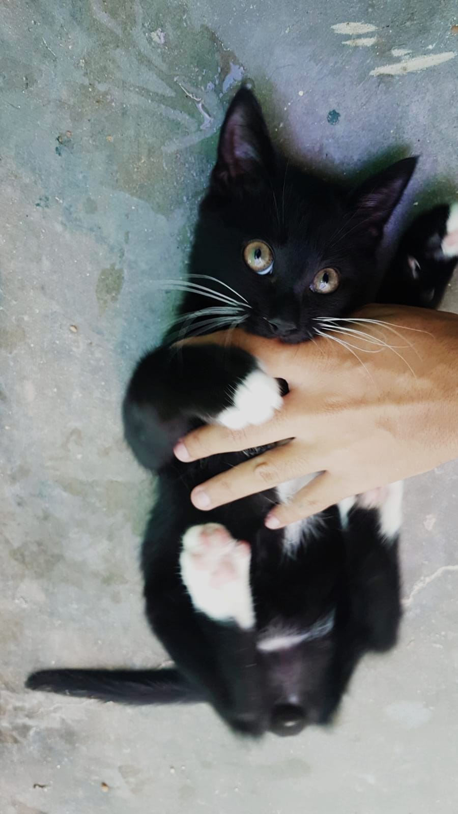 Calcetines es un peque precioso, con unos bigotes completamente blancos, unos luceritos blancos entre la tripa y el pecho y por supuesto, «calcetines» blancos en sus patitas. ¿Quieres adoptarlos?