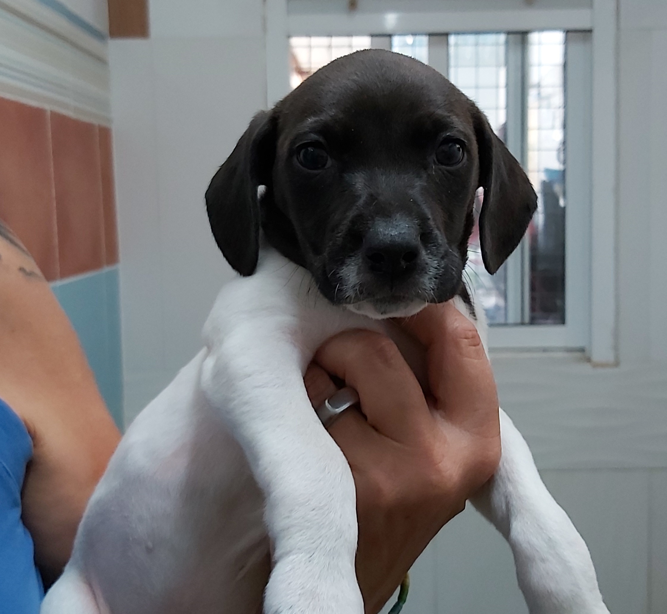 Colina tiene algo de pointer o perro de caza, quizás también algo de bodeguero… de momento es muy pequeña para saber aún qué tamaño podrá alcanzar de adulta. Sobre su carácter, por ahora os podemos decir que no destaca ni por una cosa, ni por otra. Es decir, ni es muy miedosa ni muy atrevida. Poco a poco iremos ampliando esta información. Por supuesto, no será dada en adopción hasta que no cumpla con el calendario de vacunaciones que la proteja contra enfermedades e infecciones.