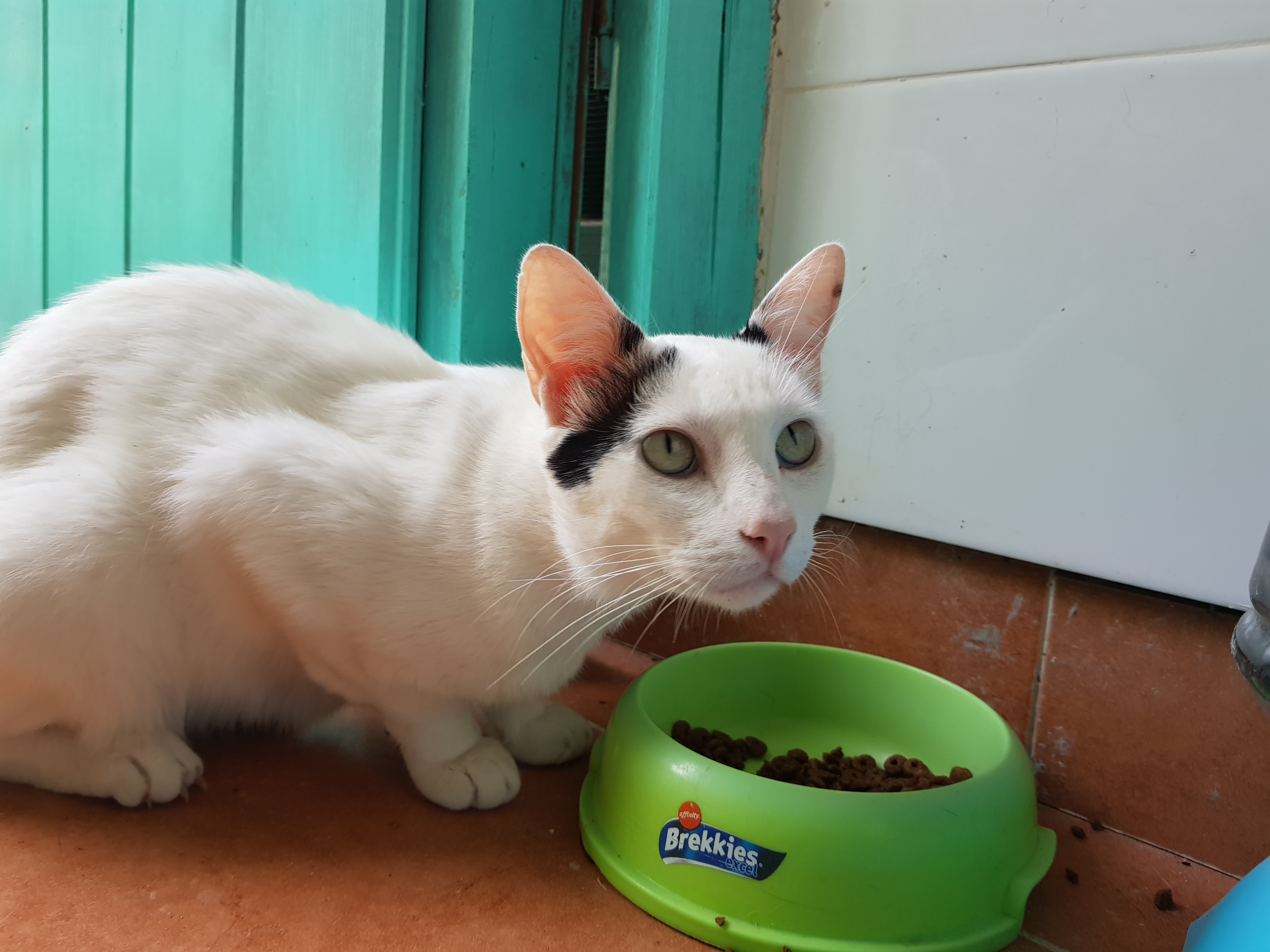 Esta preciosidad es Copito, un gato de dos años aproximadamente que no dudamos, ha sido abandonado a su suerte ya que al cogerlo, vimos que tenía las uñas recién cortadas y un buen aspecto de salud. Por suerte una de nuestras compañeras y voluntaria lo encontró rondando cerca de su casa y pudo cogerlo tras unos días de búsqueda ya que debido al miedo, Copito se había escondido.
