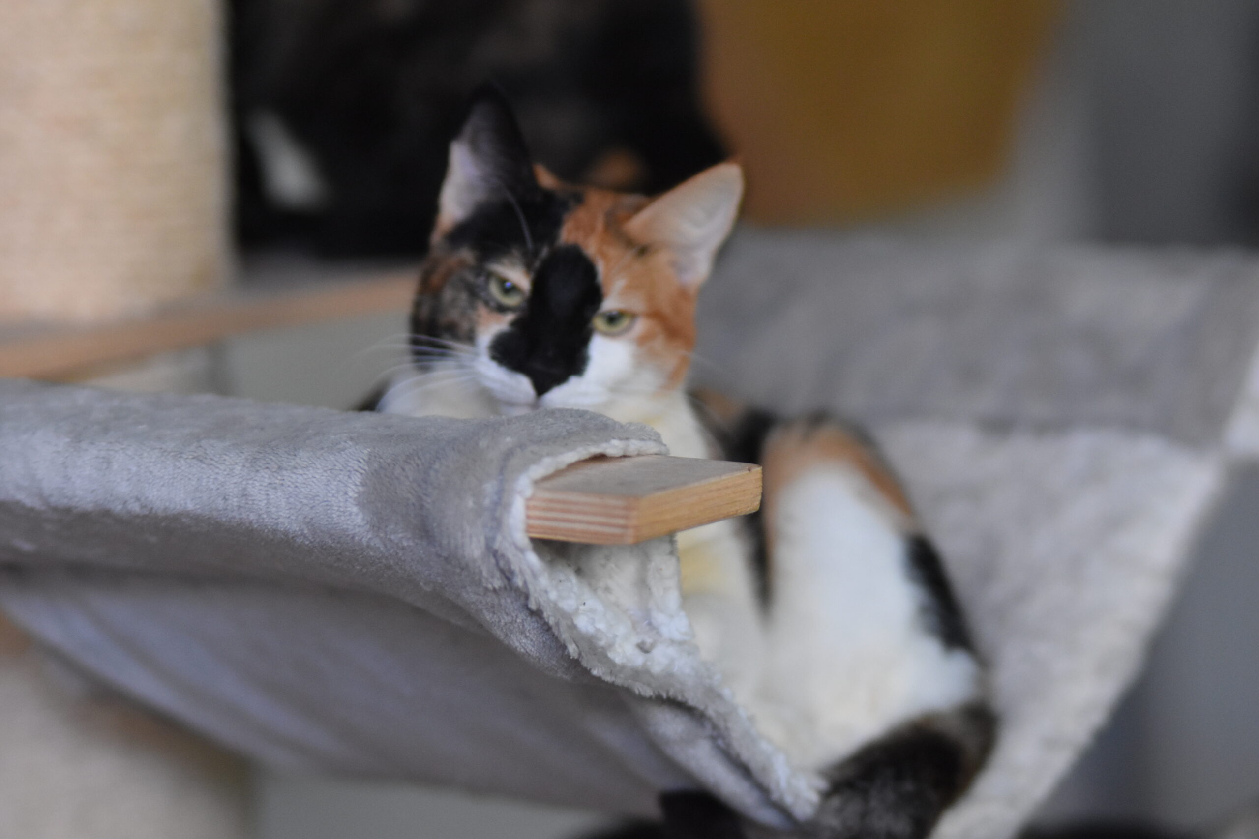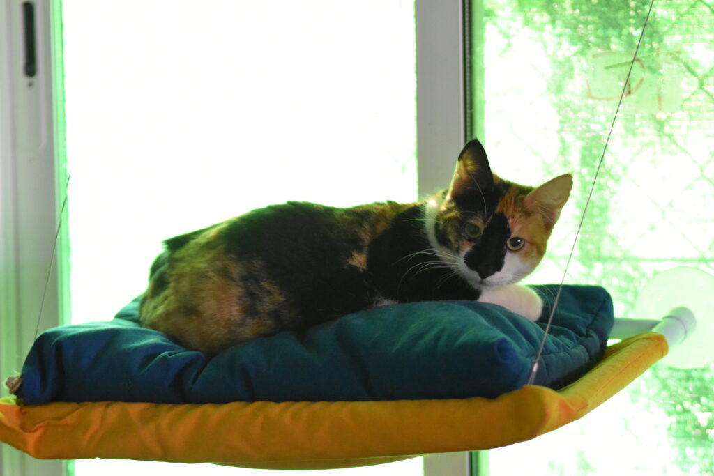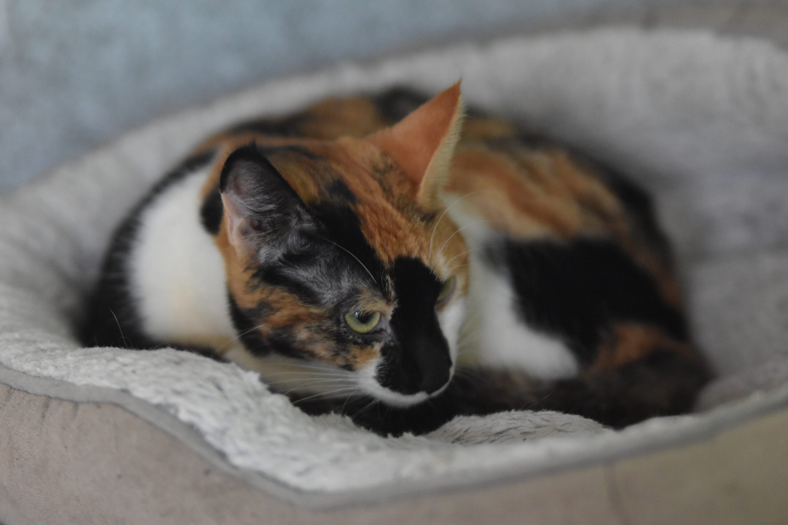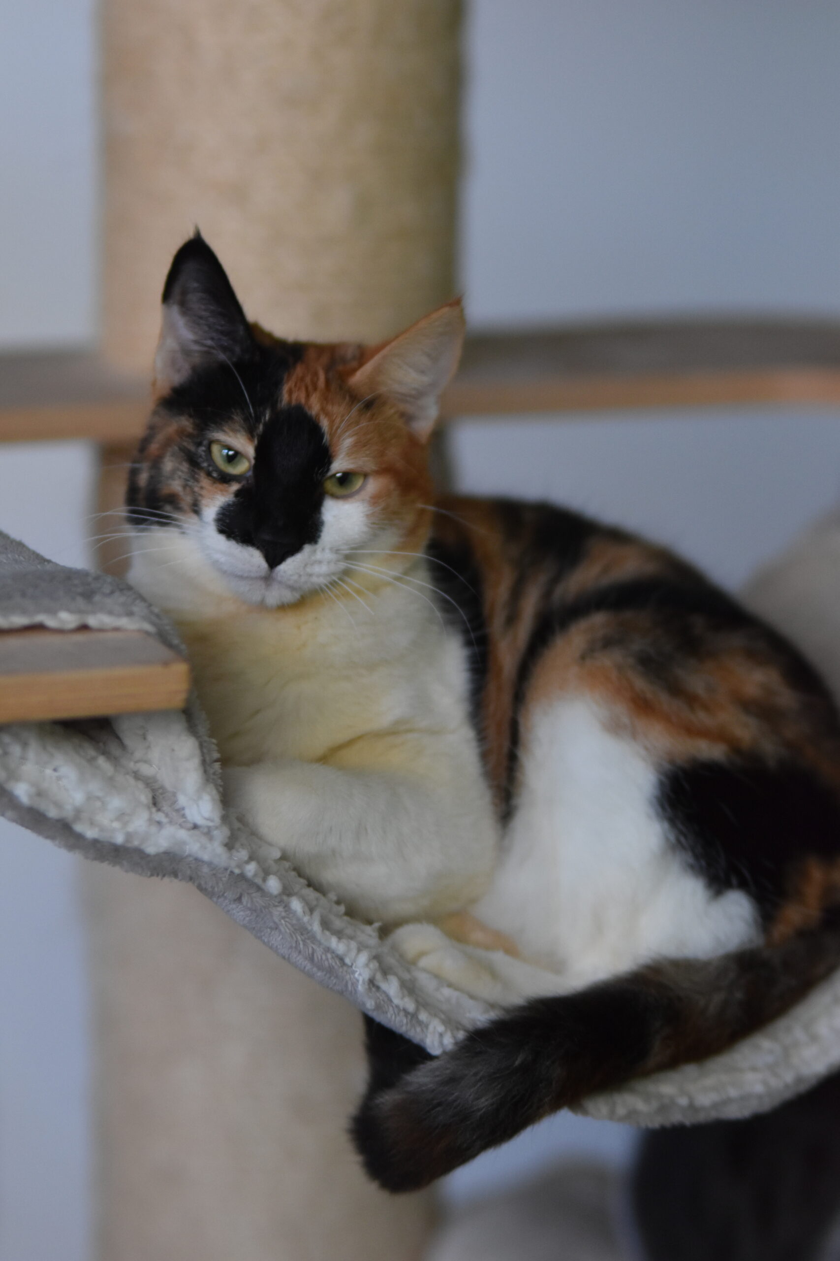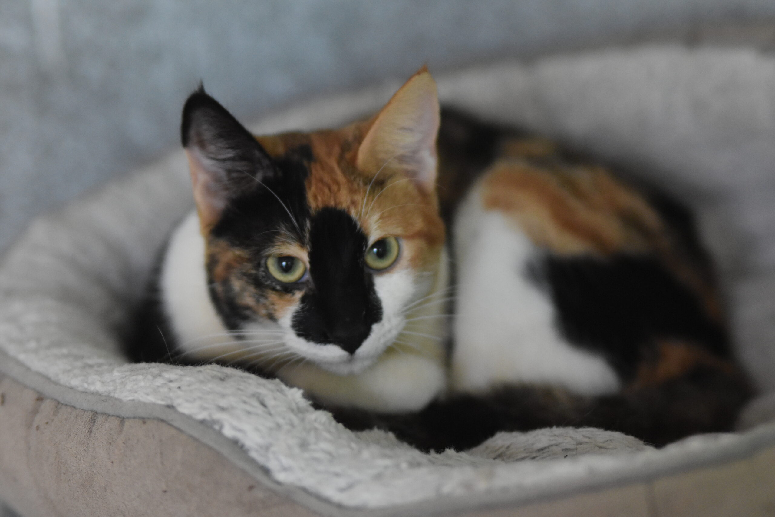 Duquesa es una preciosa gata tricolor de unos 10 meses, ya lejos de la etapa más alocada de los gatitos adolescentes y convertida en toda una pequeña princesa tranquila. Le gustan las cosas buenas de la vida: una cama o cojín cómodo, una ventana soleada y la oportunidad de recibir una atención especial por parte de las personas.