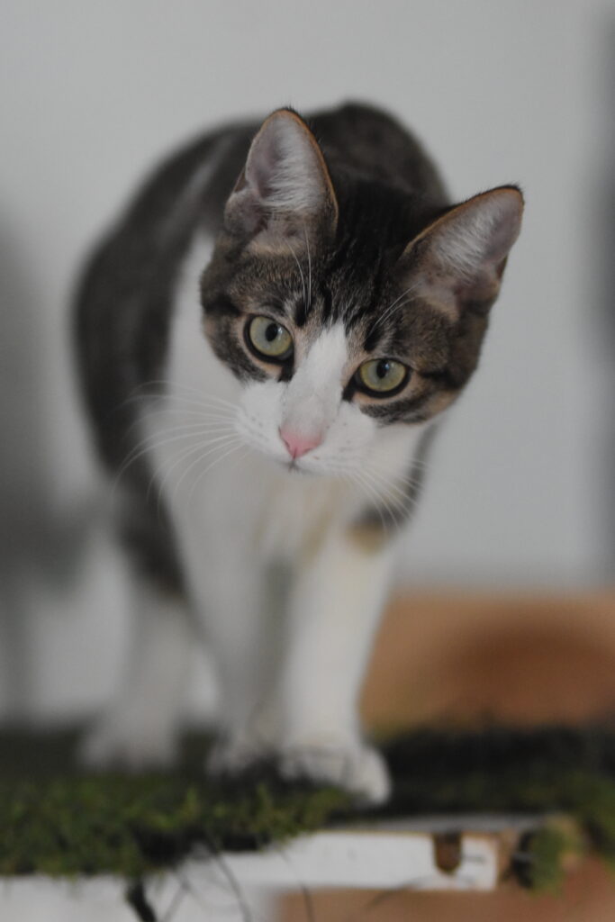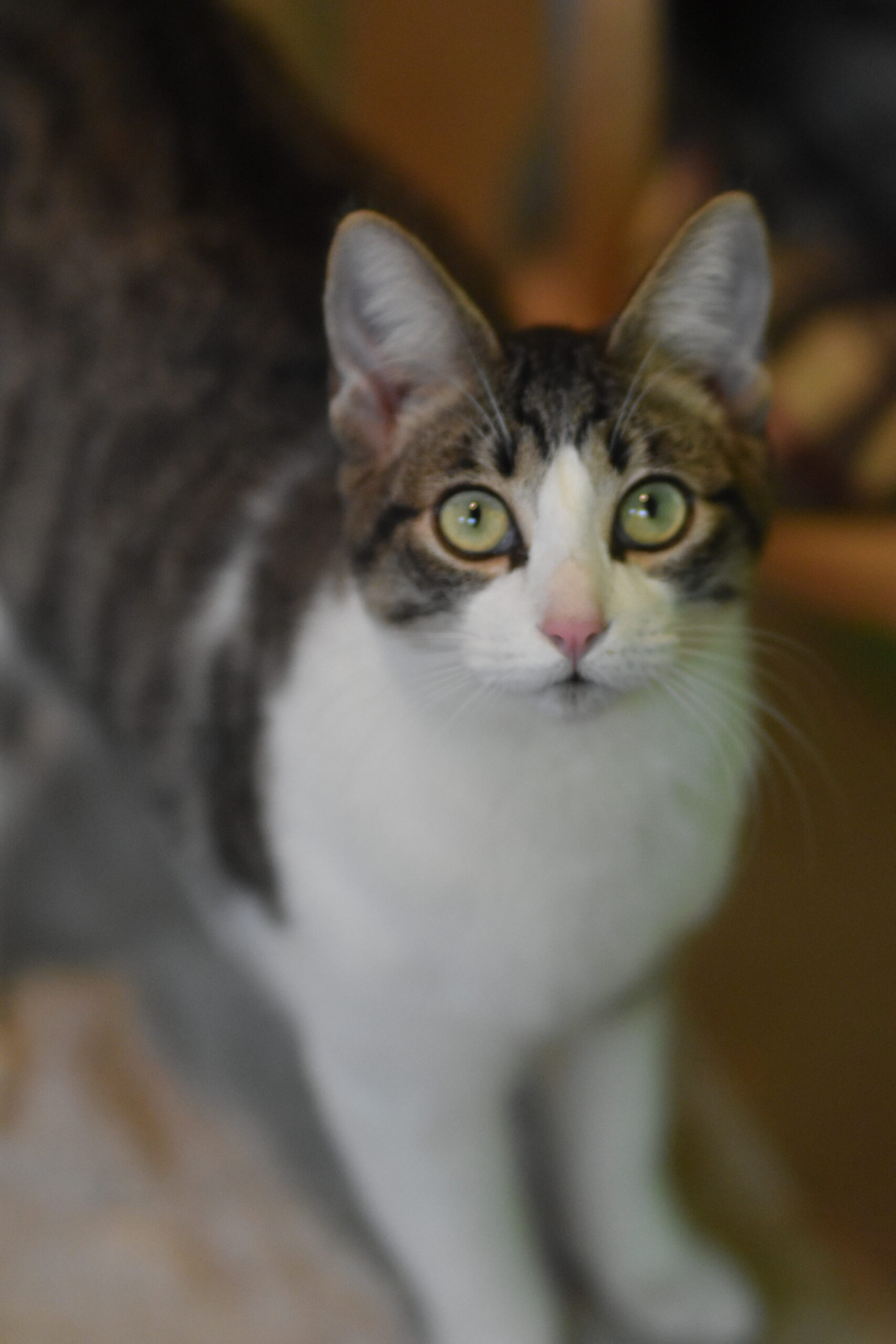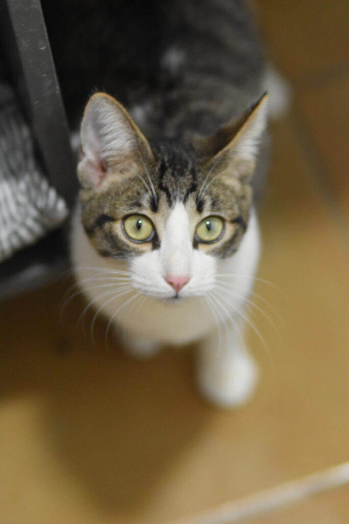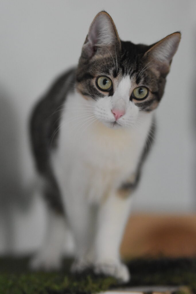 Elmer es un adorable gatito atigrado y blanco con un carácter encantador. Llegó al refugio junto a su mamá, una gata callejera que, una vez que los pequeños ya comían solos, fue esterilizada y devuelta a su colonia, la opción más ética para ella ya que sufría mucho con el contacto humano.