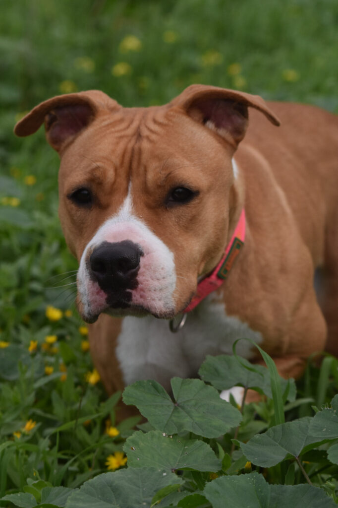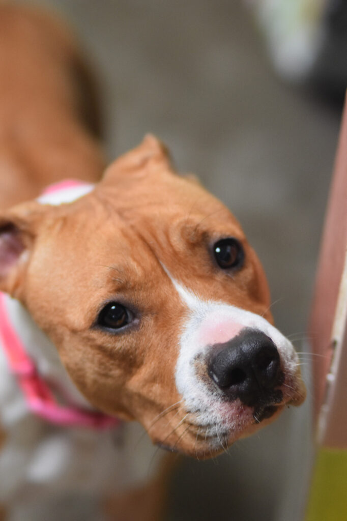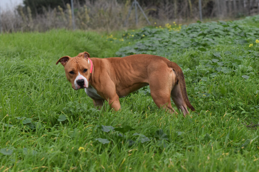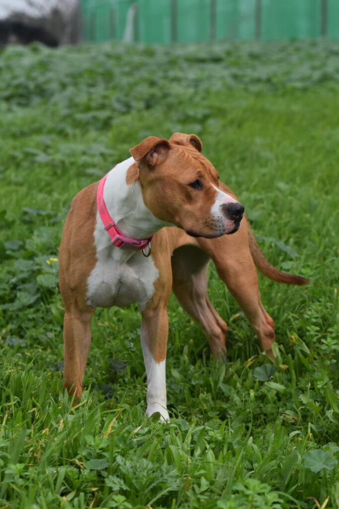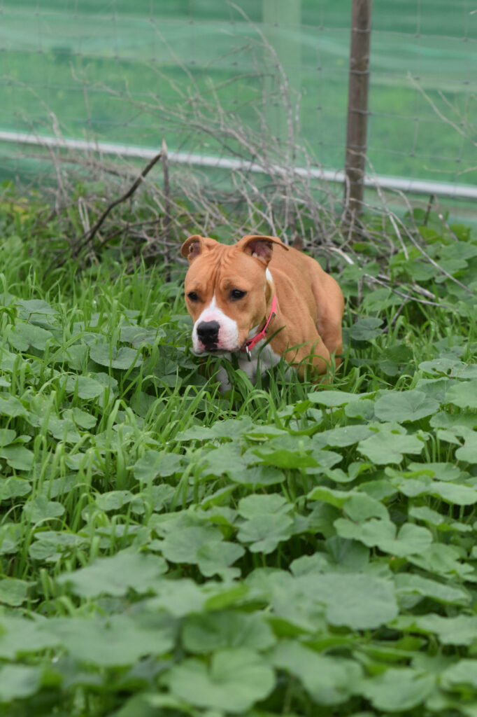 Temerosa, sin entender el pórque está encerrada en una jaula las 23 horas del día…va aprendiendo poco a poco en confiar en las voluntarias que acuden a diario a darle mimos, juegos y una buena alimentación .