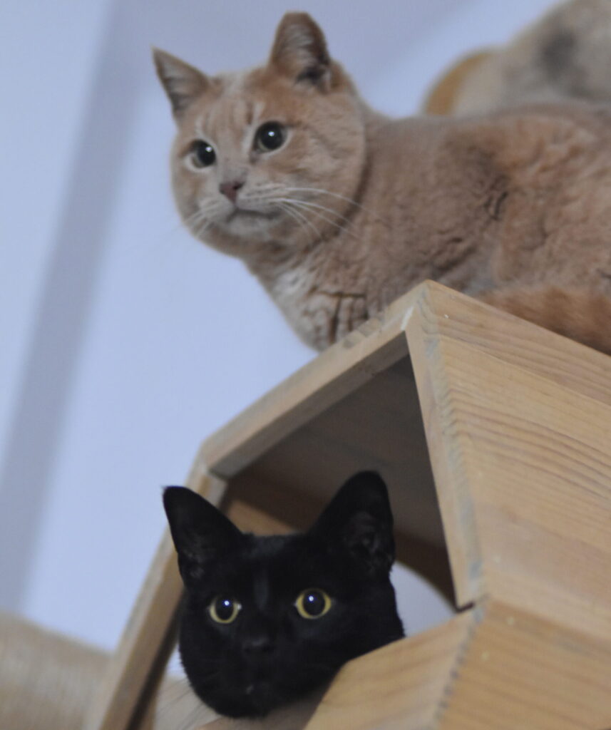 Getxo y MAxi son la pareja perfecta. MAxi es el más extrovertido y expresivo, con su impresionante pelaje negro azabache y sus ojos espectaculares. Le encanta la gente y disfruta pasando tiempo junto a alguien o en su regazo.