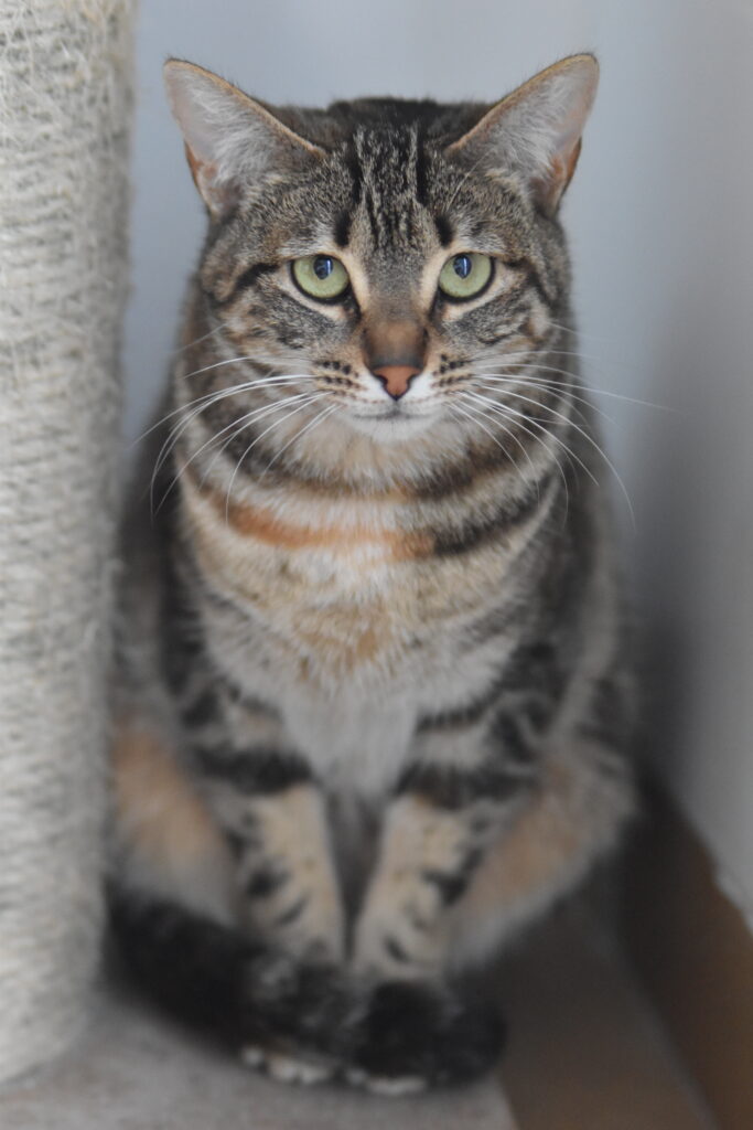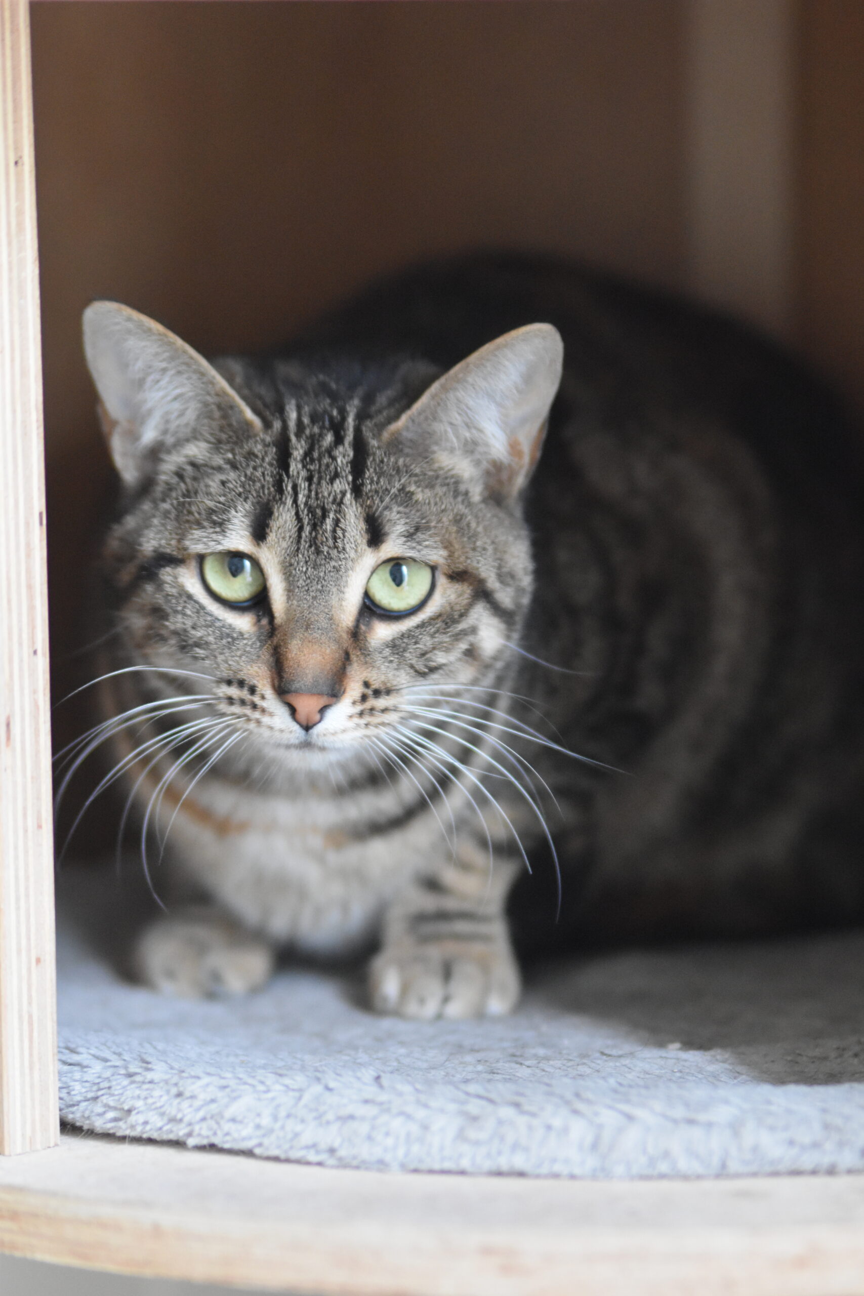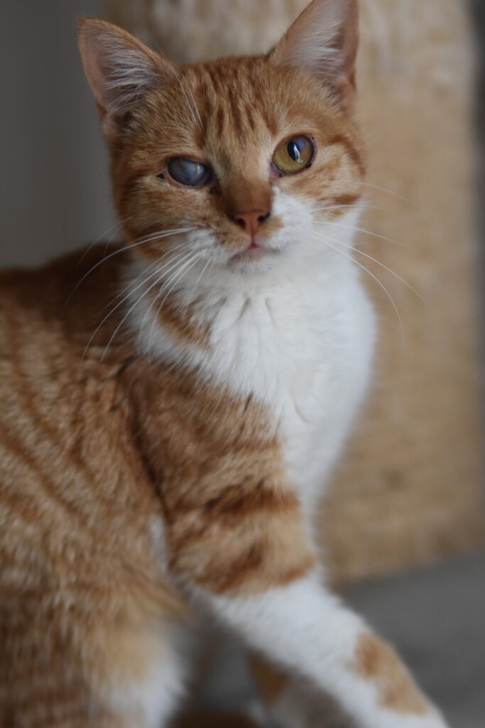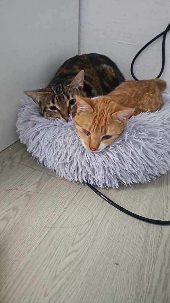 Grace es una gatita pequeña y adorable, de color naranja y blanco, que probablemente siempre será de tamaño pequeño. Le encanta ronronear y acurrucarse con los humanos. Tiene una ligera discapacidad visual que no le causa dolor, solo afecta ligeramente su visión. Elvira es una preciosa gata atigrada con pequeños destellos naranjas, de carácter un poco más reservado que Grace. Prefiere un ambiente más tranquilo y suave, pero florece en compañía de Grace y también se ha convertido en una pequeña máquina de ronroneos.