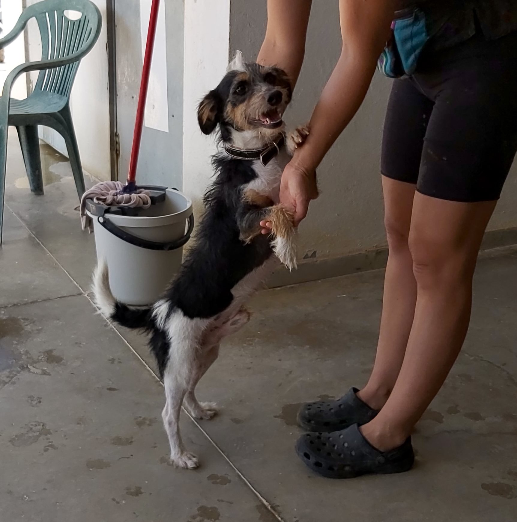 Hondo, este pequeñajo peculiar y adorable, fue encontrado por nuestra presidenta dando un paseo con su familia por el paseo marítimo. Al verlo solo y sin nadie que estuviera cuidando de él, tras más de dos horas en la calle, la gente de la zona le contó que llevaba al menos un par de días dando vueltas por la zona. El lacero pudo comprobar que no tenía chip, ni chapita identificativa y al llegar al refugio se vio que, además, estaba muerto de hambre y sed.
