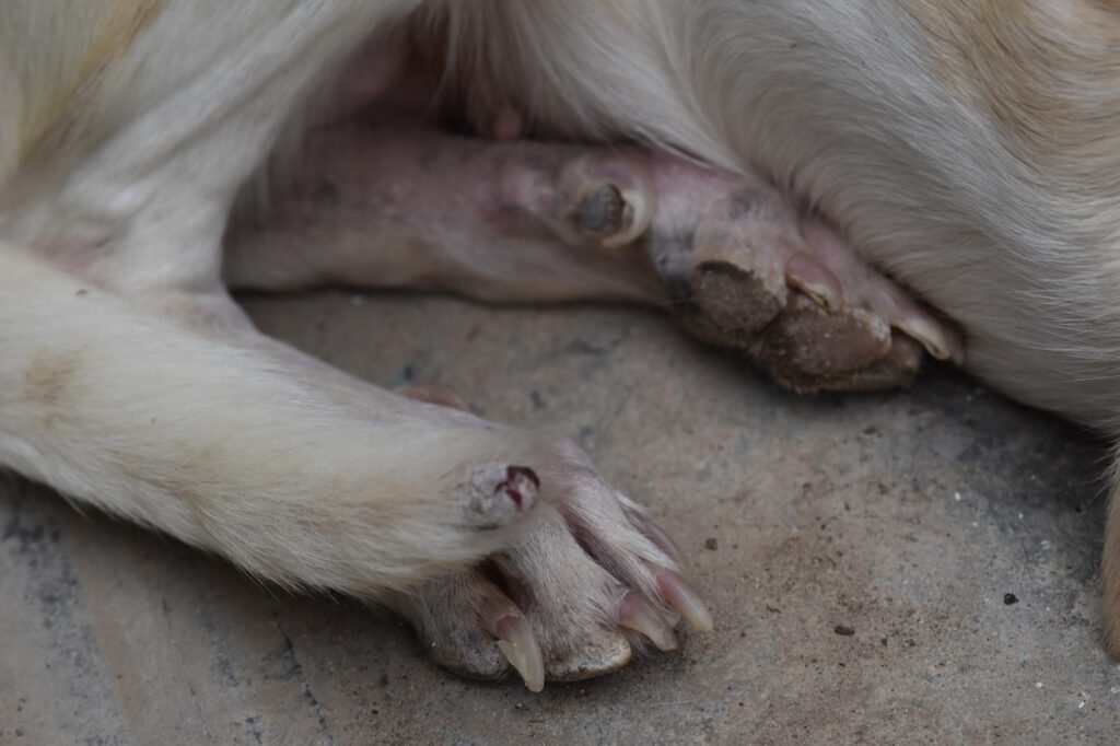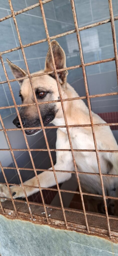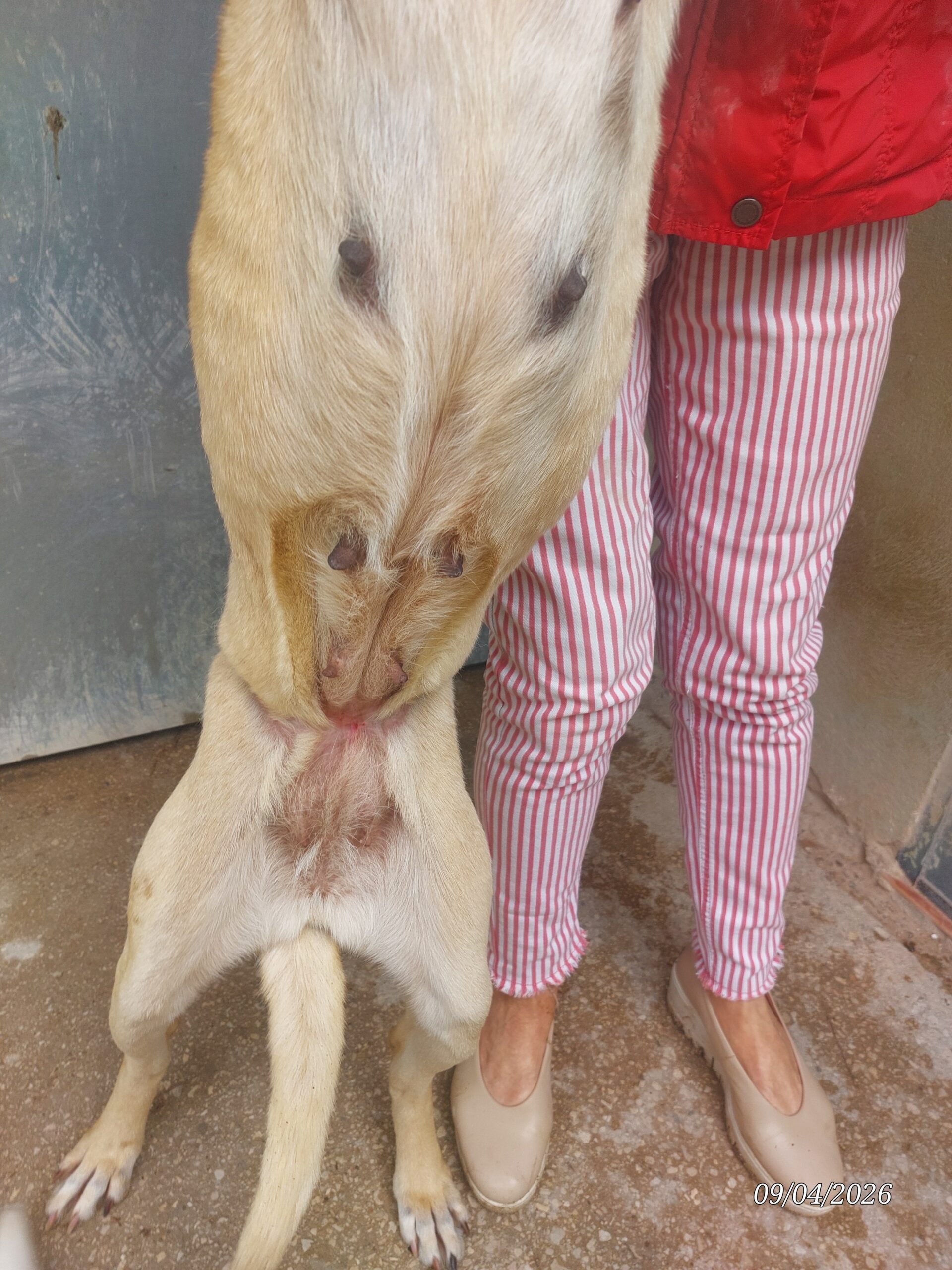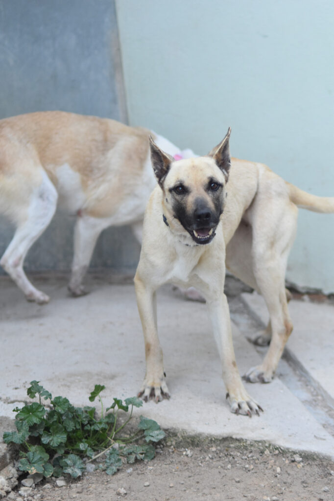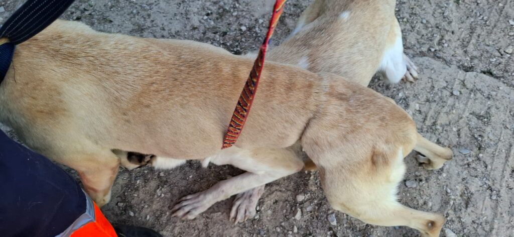 Llegan con claras evidencias de abandono, extremadamente delgadas, heridas en sus patas, descamación en sus párpados y con la enfermedad de la leishmania. Además LIGIA llega con una marca en la parte trasera de su cuerpo de haber tenido amarrada durante mucho tiempo alguna cuerda.