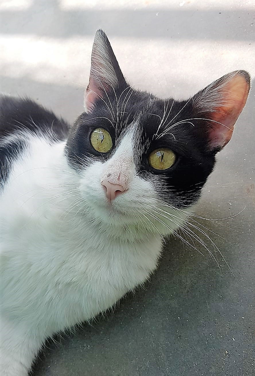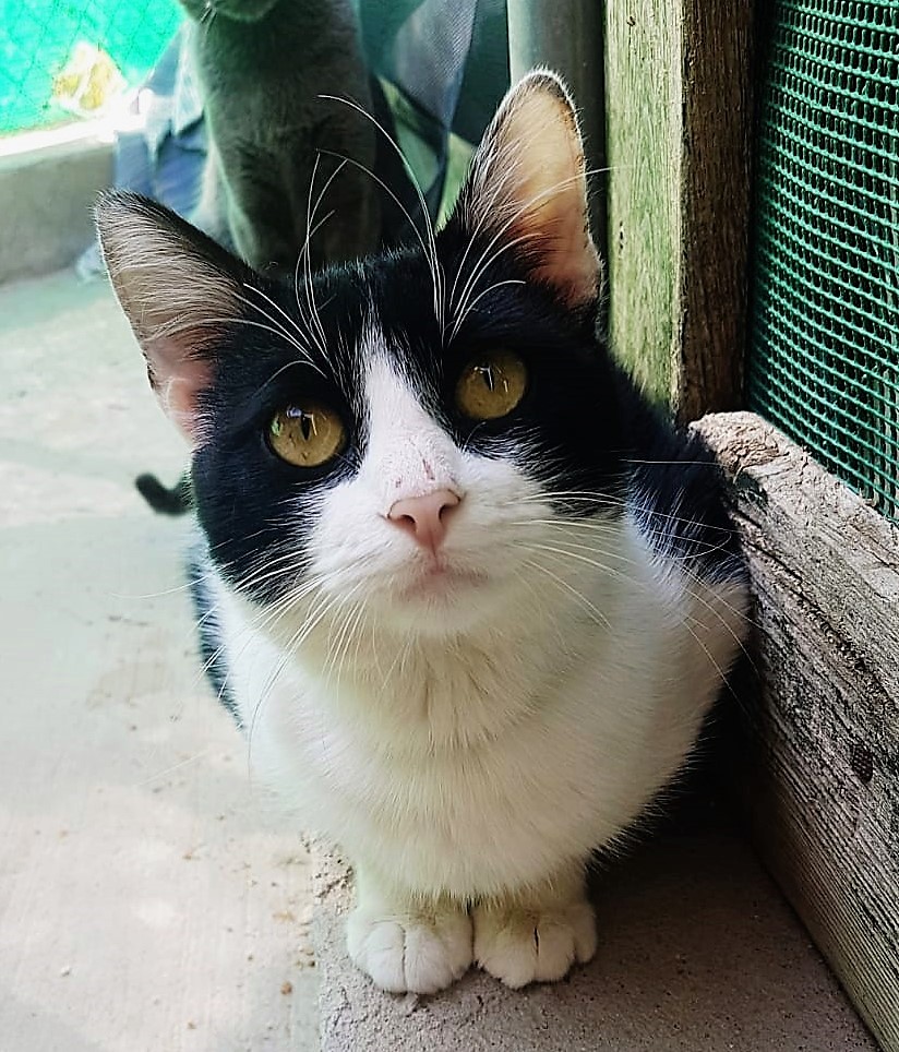 Mango es este precioso gato negro y blanco que ha sido encontrado vagando por la zona del chorrillo, mas cercana a la base naval. Estaba sucio de haberse estado refugiando bajo los coches, pero no tiene mal pelaje.