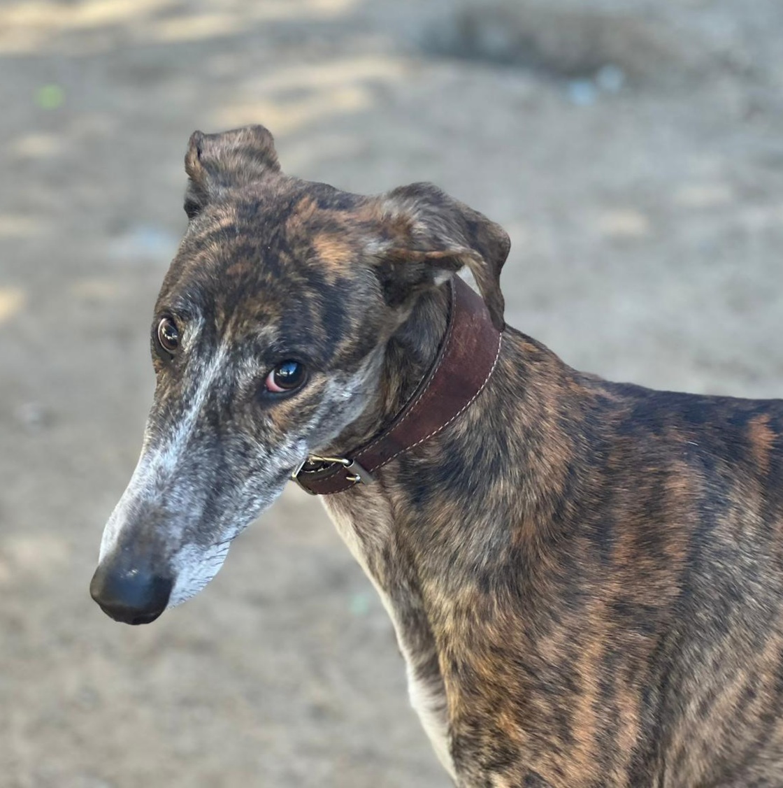 Mercury nos llega junto a Hermes, ambos, supuestamente, habían entrado en el campo de una señora que fue quien dio el aviso. Algo más delgado que Hermes, se ve que ambos han llevado la por desgracia típica vida de galgos en manos de galgueros: cicatrices por todo el cuerpo, huesos muy marcados, puntas de las orejas picadas… pero ambos tienen un carácter de los más dulce y sociable.