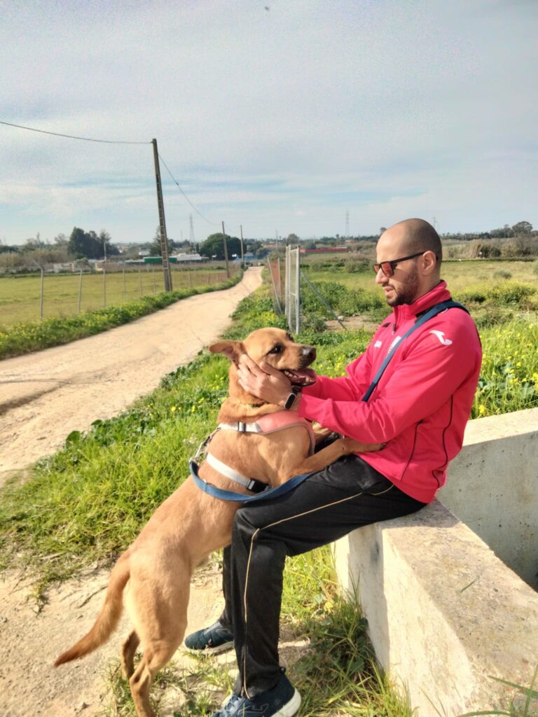 Mientras disfruta de la compañía de Sandra y Joaquín que un domingo más se acercaron al refugio desde San Fernando.