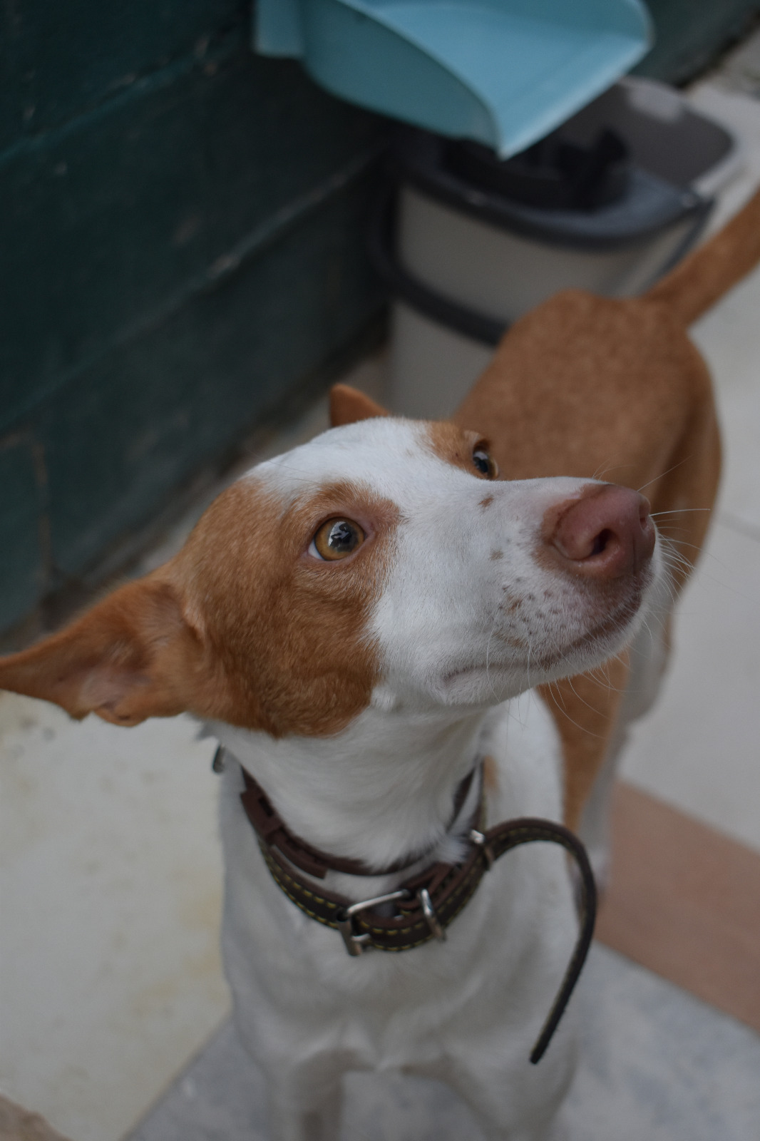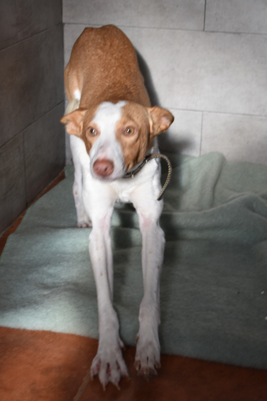 Encontrado en Costa Ballena con su correa al cuello y su collar desparasitario, oídos limpios. Espera a salir de su jaula para hacer «sus necesidades»