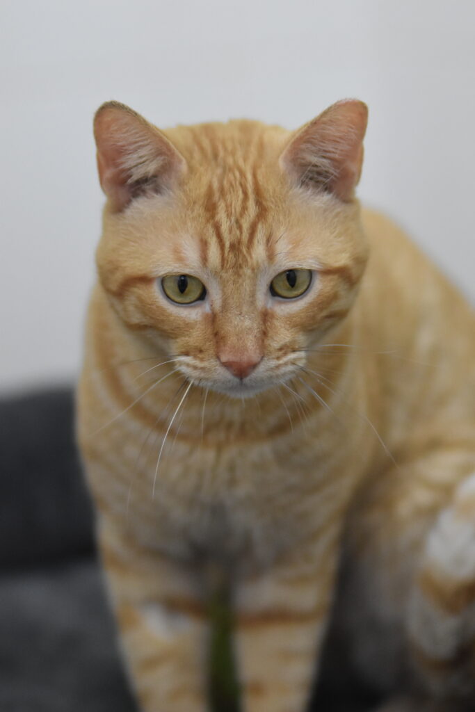 Murfi tiene un carácter dulce y unas preciosas marcas atigradas de color naranja. Le fascinan los grifos y el agua corriente, aunque no le gusta mojarse.