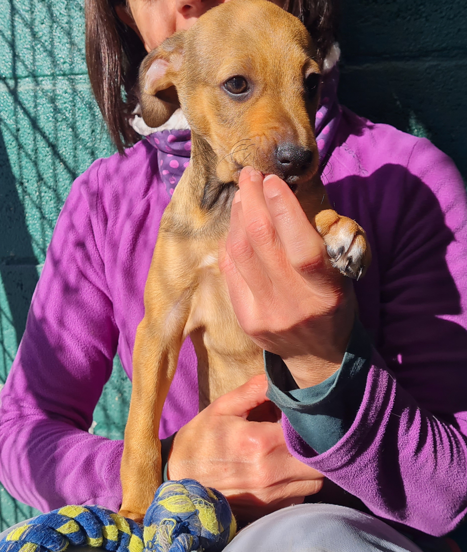 De momento tiene el típico carácter de cachorro: enérgico y vital, con mucha necesidad de contacto y con todo un mundo por descubrir. Para que pueda ser dada en adopción, la familia interesada tendrá que esperar a que cumpla el calendario de vacunación. Además, somos firmes defensoras de que, ya que no están con su madre, al menos que pasen el mayor tiempo posible en compañía de sus hermanos. Ello redundará en su beneficio emocional y le hará ser una perrita equilibrada en el futuro. De adulto parece que no serán muy grandes.
