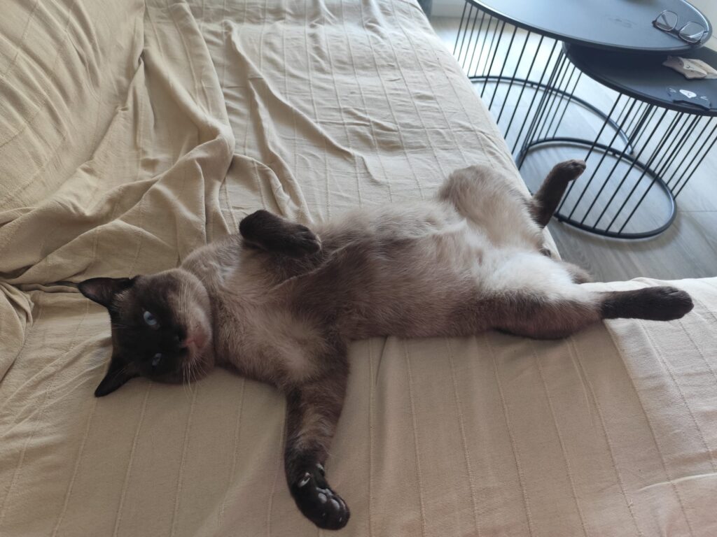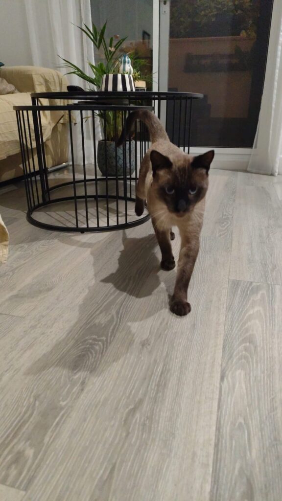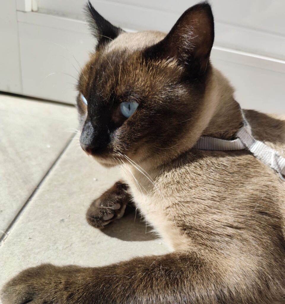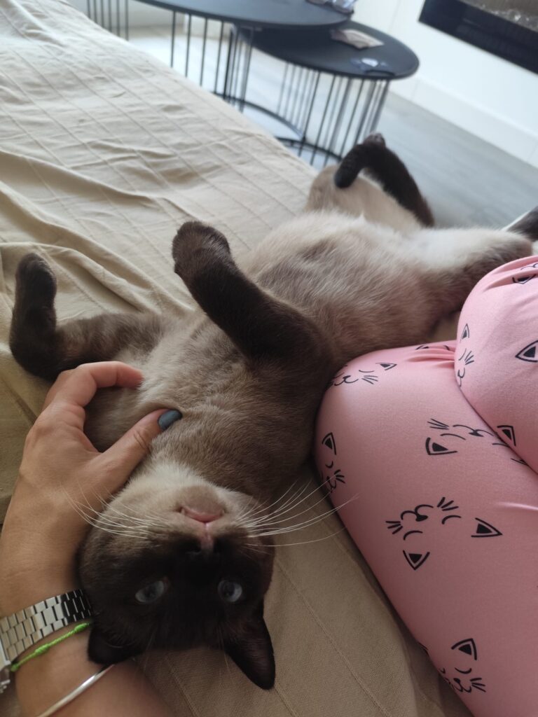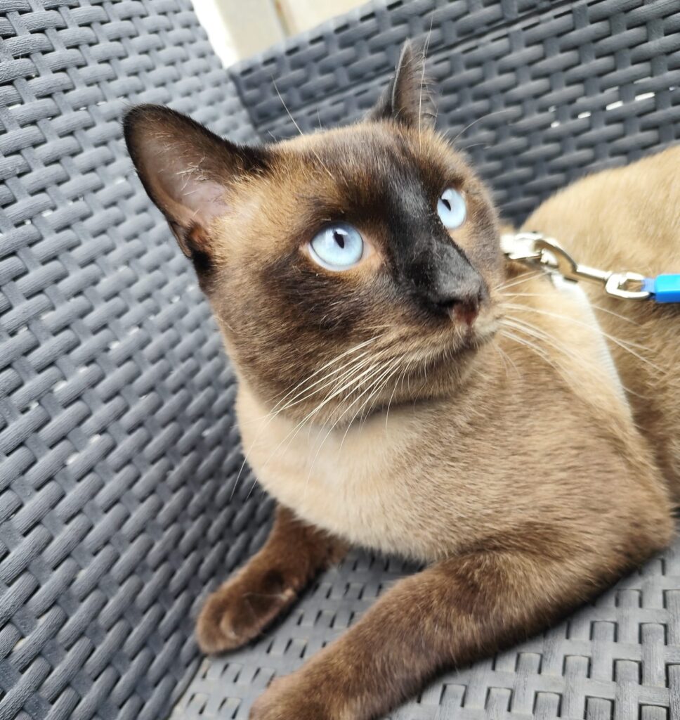 Nigiri es un gato siamés grande y guapísimo, con unos ojos azules realmente hipnotizantes. Está lleno de dulzura y amor, y busca el cariño dando suaves topetazos con la cabeza en tu brazo o pierna, sobre todo si tienes alguna chuche. Es un pequeño glotón y siempre pedirá “un poquito más”, incluso cuando su cuenco ya esté vacío. Le encanta dormir acurrucado junto a su familia de acogida siempre que puede, y disfruta muchísimo jugando, especialmente con pelotas, lo que le permite interactuar de otra forma con las personas. También ha aprendido a llevar arnés para poder disfrutar con seguridad de algunos momentos al aire libre.