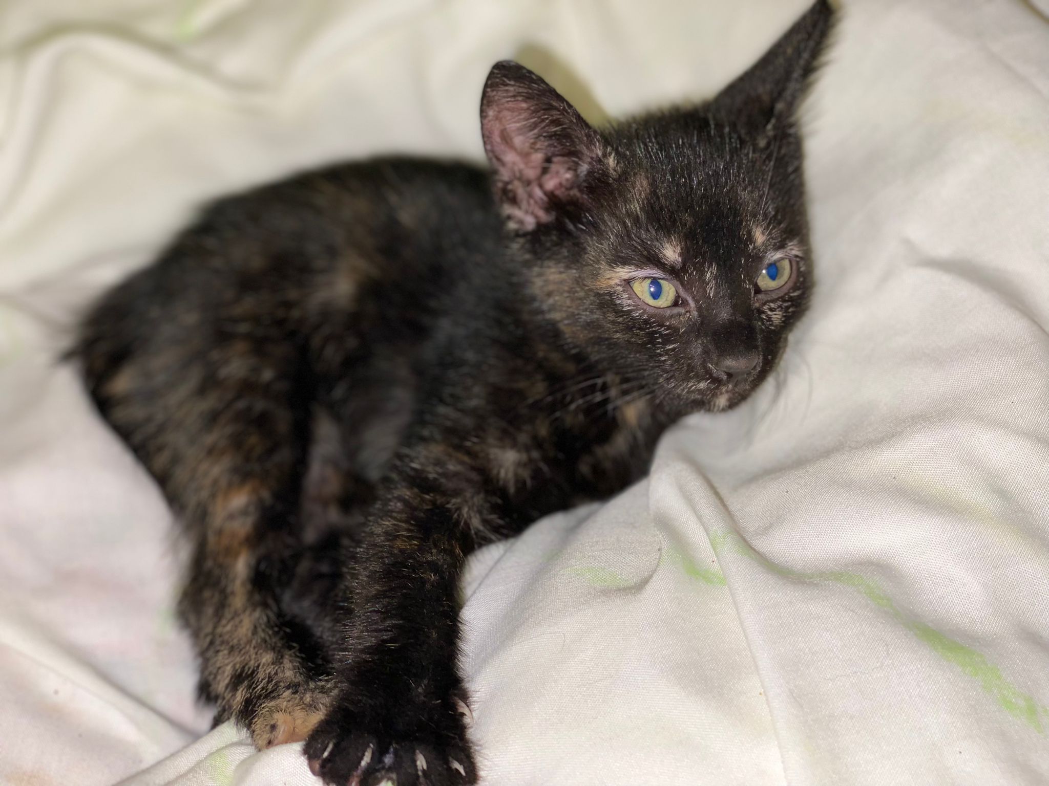 Bastante sociable con las personas e intensamente juguetona con su hermanito, tenemos claro que las primeras semanas de vida de Portia han sido en una casa. Posiblemente sea el fruto de una camada no deseada de una gata casera que ahora se preguntará dónde han ido a parar sus bebés. Y todo por la falta de responsabilidad de los humanos. Sin duda, somos la peor especie sobre la tierra.