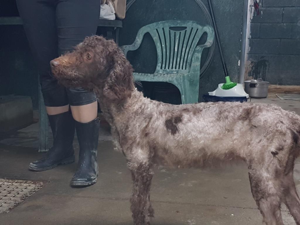 En un estado realmente lamentable nos llega Rubí: sucia, llena de barro, con el pelo hecho un nudo literalmente, extremadamente delgada, uñas larguísimas, desnutrida y deshidratada, desconfiada… cada uno de los calificativos que se pueden aplicar al estado en el que la rescatamos añade más y más dolor a su pasado. Rubí estaba en un campo cerca de nuestro refugio, por la zona de Bercial y su rescate no fue precisamente fácil debido al estado de miedo que mostraba. Por fortuna ese miedo no se ha traducido en agresividad, sino en un carácter que aún es un poco tímido.