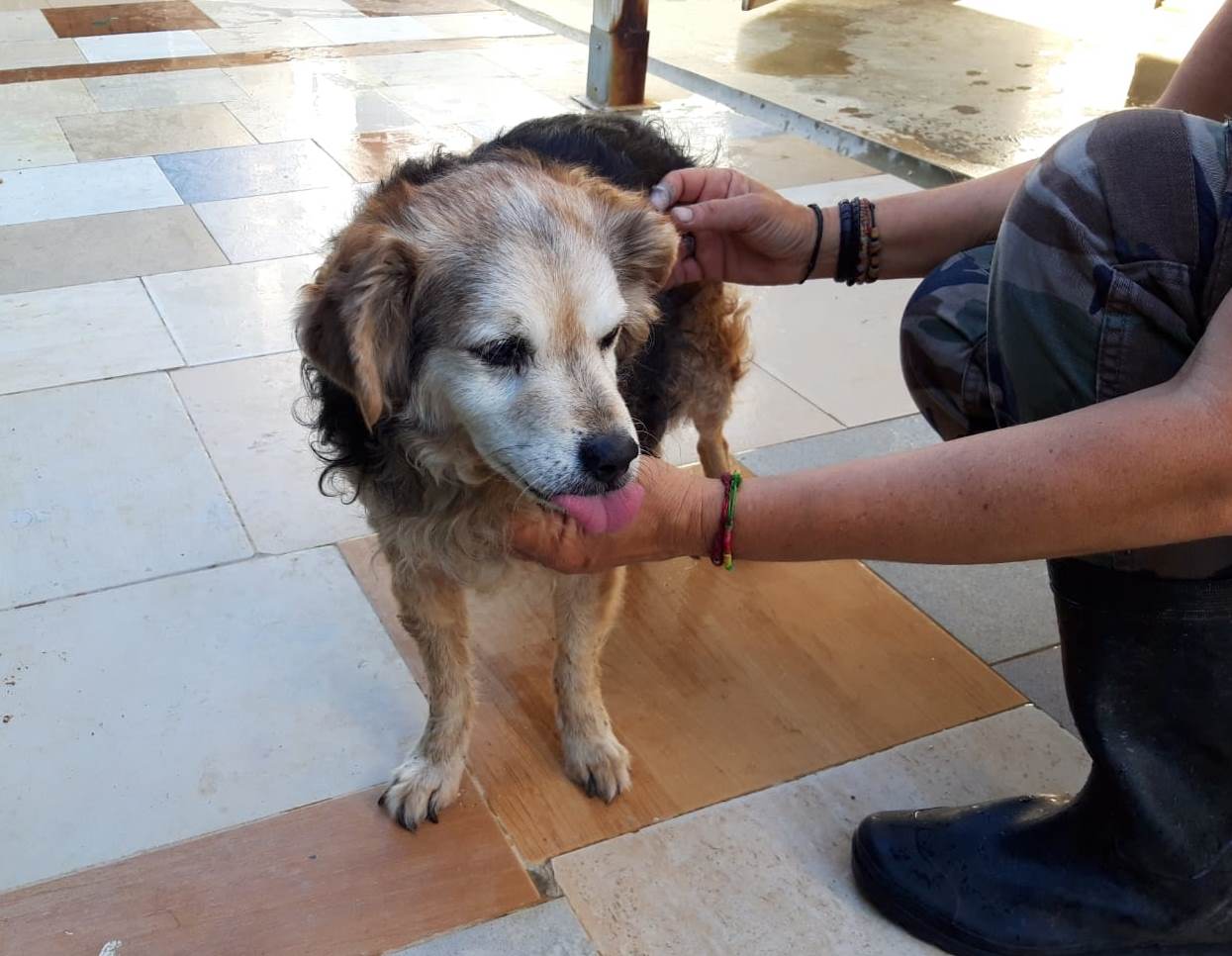 Tenemos el alma rota con esta nueva llegada. Si cada uno de los animales que llegan a Siempre Contigo traen una historia más o menos triste a su espalda, Sam es, sin lugar a dudas, mucho más triste en estos momentos. Apareció con un arnés y una correa viejas y bastante sucias, vagando sólo por las calles de nuestra localidad. No tiene chip y de momento nadie lo ha reclamado o ha venido a buscarlo. Tiene uñas muy largas, el pelo un poco enredado, los dientes en mal estado… pero oye y ve bastante bien.