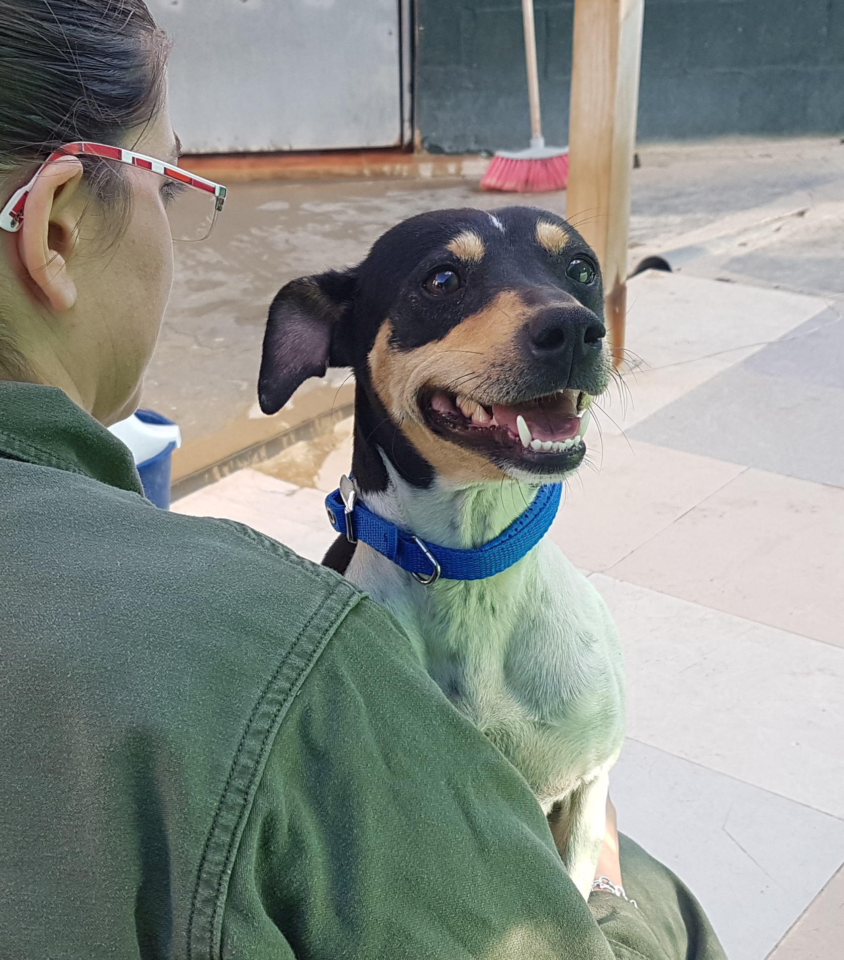 Esta preciosa y cariñosa bodeguera hembra se arrimó a un grupo de trabajadores del algodón en la hora del almuerzo, seguramente al olor de la comida que ellos tenían y que a ella le faltaba desde hace días. Confiada y acostumbrada a estar entre personas, Shio no tiene chip, como la mayoría de los que llegan a nuestras instalaciones.