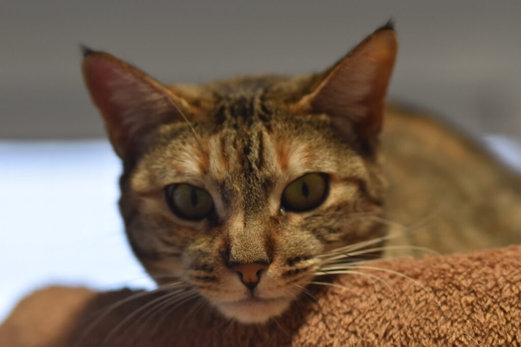 Tammi es una gata atigrada con delicados toques naranjas, de cuerpo esbelto y una elegancia especial. Llegó al refugio junto a sus hermanas, Nikita y Nabi, cuando apenas tenían entre 8 y 10 semanas de vida. Al principio puede parecer un poco tímida, pero una vez coge confianza se muestra muy cariñosa y sorprendentemente habladora.
