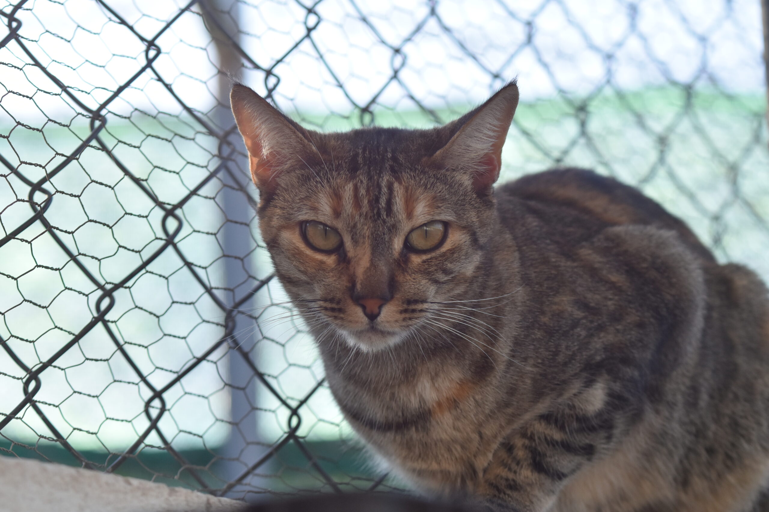 Ser vocal es algo que comparte especialmente con su hermana Nikita: ambas saben perfectamente cómo llamar la atención de los voluntarios, ya sea para pedir mimos o algo de comida. Tammi se lleva de maravilla con otros gatos y su carácter tranquilo hace que a menudo se la encuentre acurrucada en una camita junto a Cuarzo u otro compañero felino.