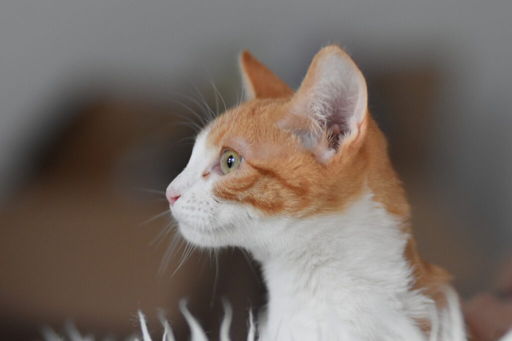 Tayra es una preciosa gatita blanca y naranja, dulce y muy cariñosa, que fue encontrada junto a otros dos gatitos, probablemente sus hermanos. Tras un comienzo de vida difícil, en el que luchar por comida y calor era su día a día, Tayra y sus hermanos han podido crecer y recuperarse en una casa de acogida, donde han florecido por completo.
