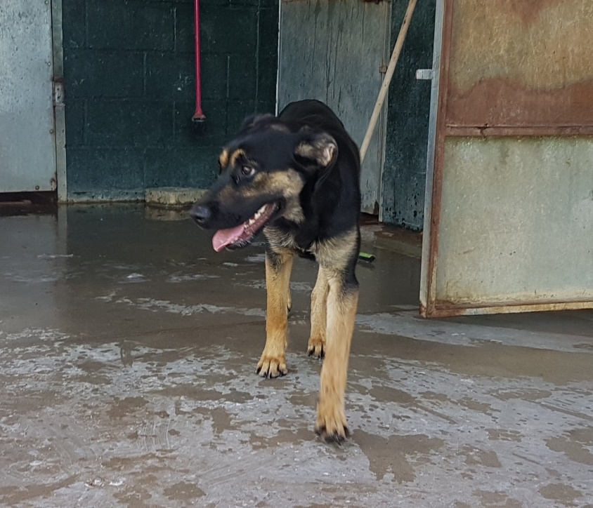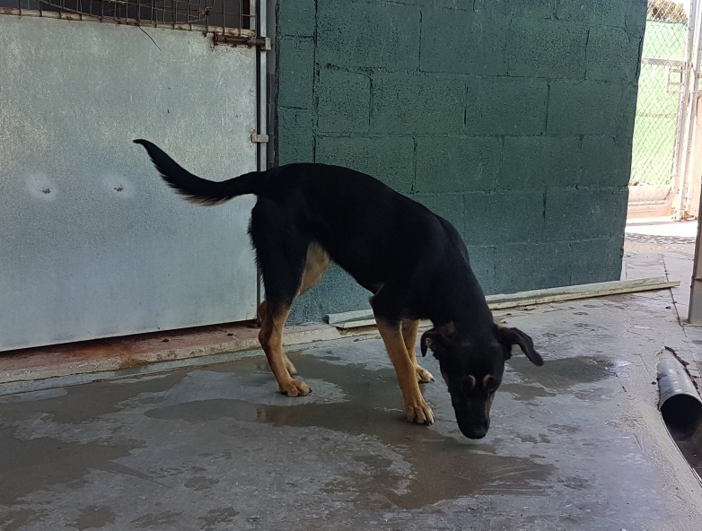 Por las cercanías del cementerio Toscana iba corriendo desorientada, por la cuneta de la carretera, muy transitada a esas horas. Algunas de las personas que la vieron dieron aviso a la policía y, por suerte, unas compañeras que estaban cerca pudieron rescatarla y llevarla al refugio. Llegó con las patas enfangadas y muy sucia, con parásitos y bastante nerviosa.
