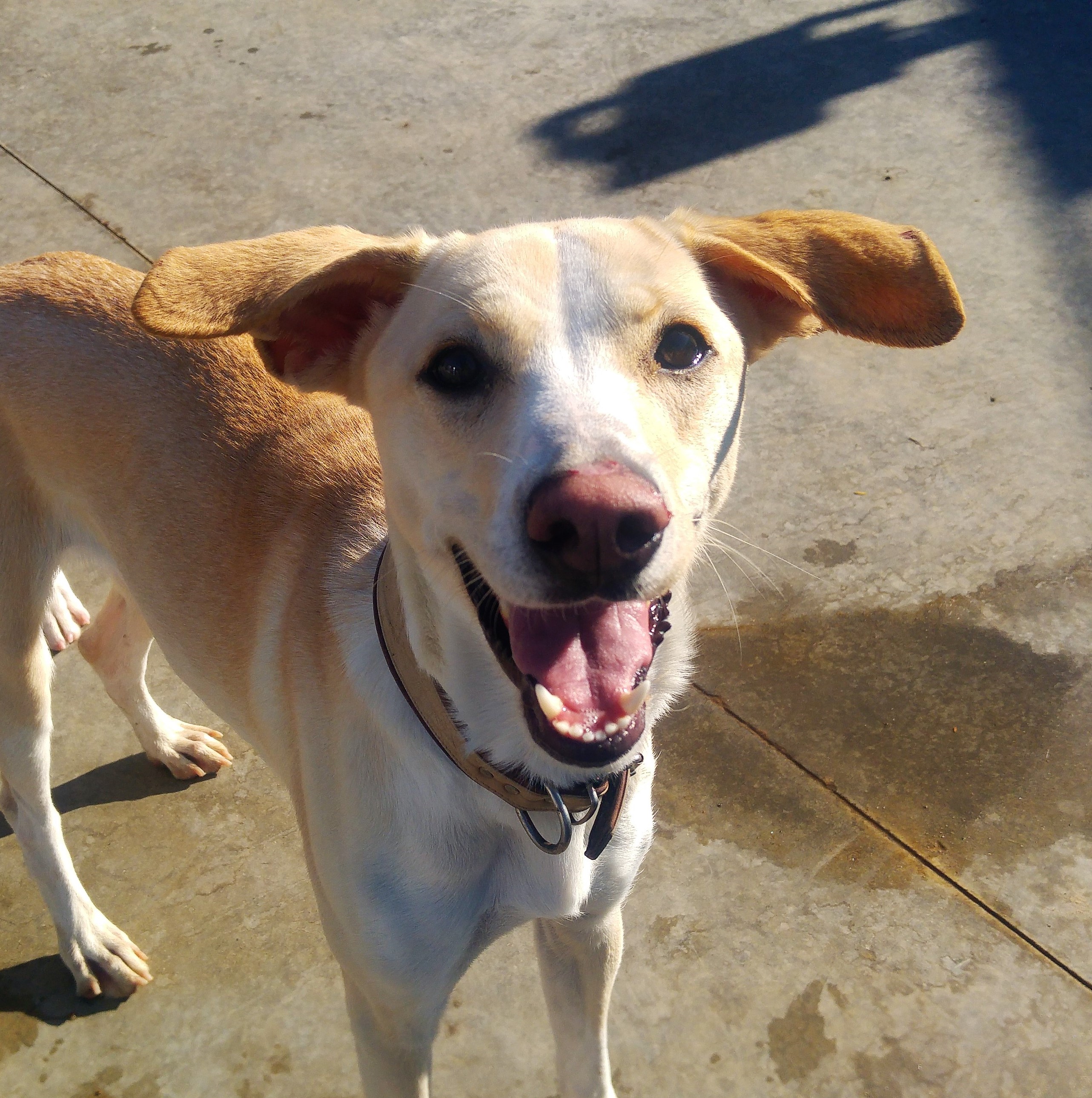 Turquía llega a nosotros recogida por el lacero municipal de una de las calles del centro de nuestra localidad un lunes cuando ya caía la tarde noche. Venía tiznada de pintura, no siendo el primer perro que nos llega así. Por lo demás, venía limpita, sin pulgas o garrapatas.